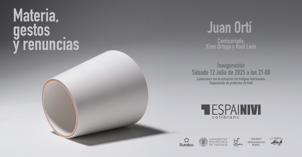 La Galería Espai Nivi, en Culla (Castellón) presenta, del 12 de julio al 7 de septiembre de 2025, la exposición ‘Materia, gesto y renuncia’ del escultor Juan Ortí, comisariada por Ximo Ortega y Raúl León. La inauguración tendrá lugar el sábado 12 de julio a las 21:00h.